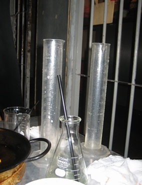 写真は、ビーカー、フラスコ、シリンダーですね。ここではお酒の入れ物です