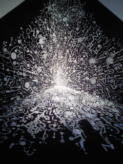 Chim↑Pomの抱き合ってる男女(実はポッキーゲームしてる)の作品、すげー退廃的でウケタ。