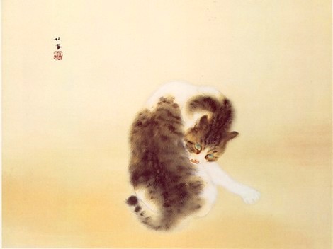 竹内栖鳳の『班猫』(「はんびょう」、あるいは「まだらねこ」)は山種の所蔵作品ですが、今回展示はございません。しかし、以前見た時から大大大好きな作品なので、ファイル買っちゃいました♪ふわふわ~