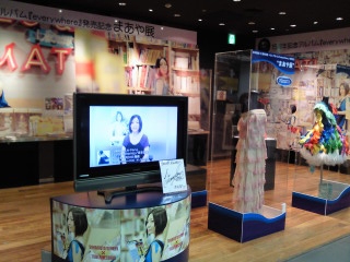 手前から、コメントを流してるテレビ、『everywhere』のPVでの衣装、七夕ソニック(マクロスFイベント)の衣装。他のタワレコ、ゲーマーズ、山野楽器ではまた違った展示があるらしいです。