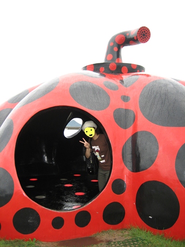 奈良美智Tシャツを着て直島に上陸した管理人。間違った現代アートマニアの姿である(笑)