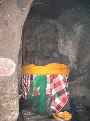 洞窟の中にはガネーシャ様。この布の色にはそれぞれ意味があって、ありあわせにチェックの布を巻いているわけではない様子。バリ島は主にヒンドゥー教。