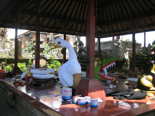 王族とか地位の高い人の火葬式には、装飾された山車のようなものが使われるので、王宮の中ではその準備中。
