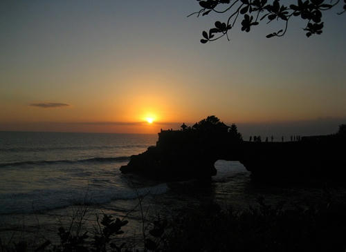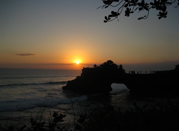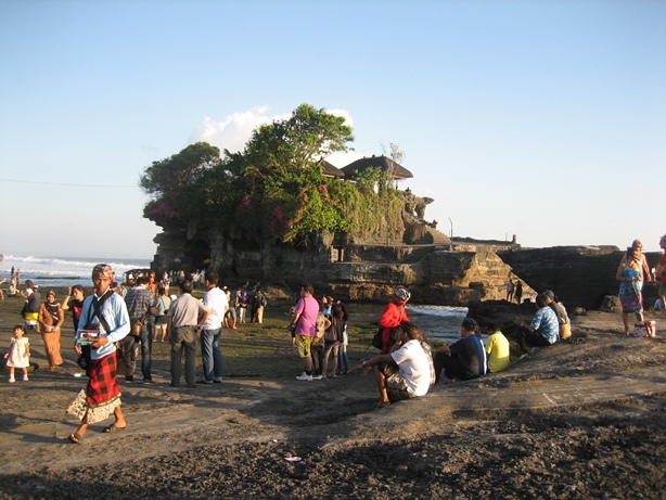 タナ・ロット寺院。干潮時だけ歩いていける。地学の先生が喜びそうなボコボコした地形をしていた。
