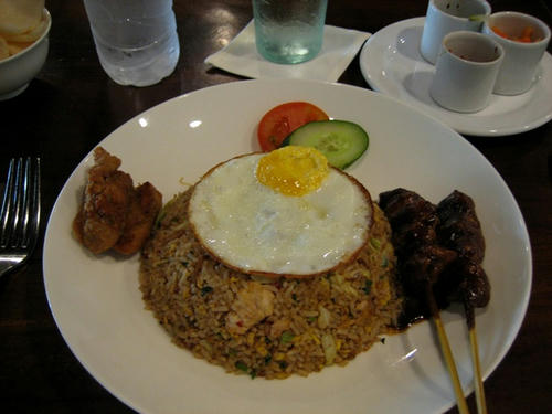 ナシゴレン!!目玉焼き付きは、ナシゴレン・イスティメワ(特別)という。