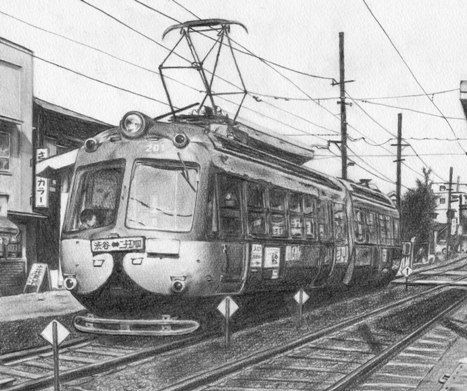 数年前に、写真見て描いた旧型の世田谷線。↓