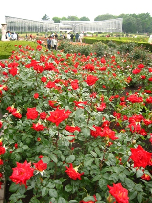 そしてバラ園。向こうに見える温室では熱帯の植物が見られます。