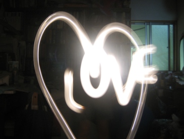 デジカメの露出時間を15秒に設定し、暗い部屋で黙々と懐中電灯を振り続けました。