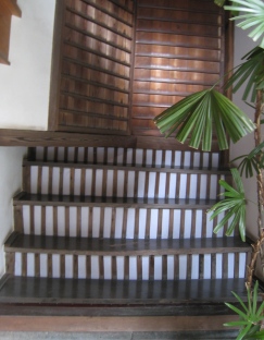 ↓お寺の外から見える仕掛けなんだけども、階段に障子が貼ってあって、